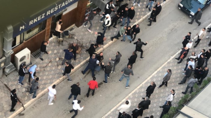 Kavga sırasında bir kişi, belinden çıkardığı tabancayla havaya ateş etti. Ardından taraflar birbirlerine masa ve sandalyelerle saldırdı.