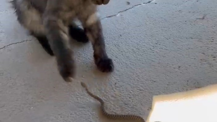 Merkeze bağlı Çalıca köyü Ağılcık mezrasında meydana gelen olayda, edinilen bilgiye göre, evinin balkonuna çıkan vatandaş, kedi ile yılanın kavga ettiğini fark etti.