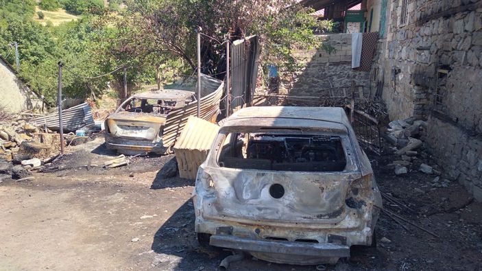 Elazığ’da, köyde çıkan yangında 2 araç küle döndü
