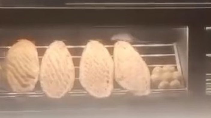 Ekmek fırınının içerisinde fare olduğunu fark eden bir vatandaşın kayda aldığı görüntülerde, farenin tezgahtaki ekmeklerin üzerinde gezdiği görüldü. İşletmeye, 105 bin 274 lira para cezası kesildi.