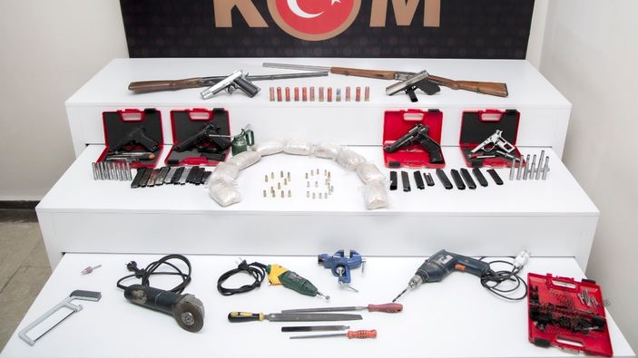 Düzenlenen operasyonda, 10 adet ruhsatsız tabanca, 2 adet antika av tüfeği, 65 adet fişek, 12 adet tüfek fişeği, 7 adet mermi fişeği, 11 adet boş kovan ile silah yapımında kullanılan 58 adet tabanca gövde ve parçaları, 17 adet el yapımı tabanca namlusu, 27 adet çeşitli ebatlarda şarjör gövdesi, kurusıkı tabancaların namlusunu açmada kullanılan CNC cihazı, spiral ve taşlama makineleri ile matkap ele geçirilirken, 2 kilogram 48 gram da metamfetamin maddesi ele geçirildi.