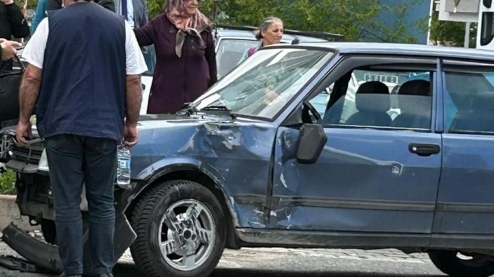 Çarpışmanın etkisiyle kontrolden çıkan araç, yakınındaki başka bir otomobile daha çarparak durabildi.