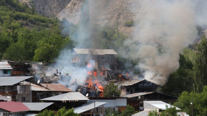 Erzurum’un Oltu ilçesine 36 kilometre uzaklıktaki kırsal Arıtaş Mahallesi'nde bir evde, elektrik kontağından çıktığı tahmin edilen yangın kısa sürede bitişikteki 5 eve daha sıçradı.