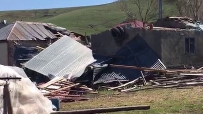 Erzurum'da hortum, binaların çatılarını uçurdu