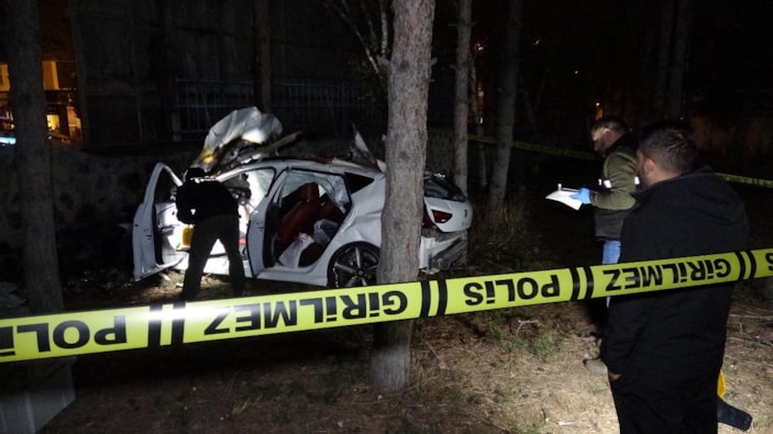 Aşırı hız nedeniyle refüje çarptıktan sonra hastane bahçesine düşen otomobil alevlere teslim oldu. Kazada araçta bulunan 3 kişi hayatını kaybetti.