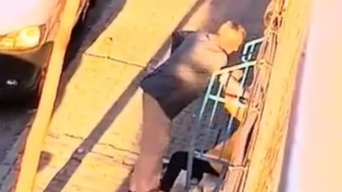 Görüntülerde, komşusunun merdiveninde oturan çocuğun, dedesi tarafından tartaklandığı ve tokat atıldığı görülüyor. Ardından dede, çocuğu kaldırıp evlerine doğru götürürken de tekme atıyor. Olay anı ise bir mahalle sakini tarafından cep telefonu ile kaydedildi.