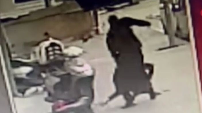 İHA'nın haberine göre, yaşanan o anlar çevredeki bir iş yerinin güvenlik kamerasına yansıdı.