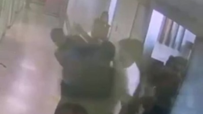 Yaşanan kavga sırasında bir şahsın görevliye yumruk attığı o anlar güvenlik kamerası tarafından kaydedildi.