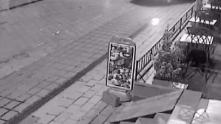 Çarpmanın şiddeti ile havaya fırlayan motosiklet sürücüsü, meydanda bulunan bir bankın üzerine oturur vaziyette düştü. Kazada yaralanan olmazken, o anlar ise bir iş yerinin güvenlik kamerasına yansıdı.