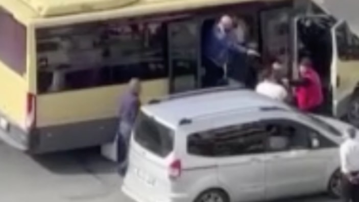 Bu sırada minibüsünden inen şoför ise ticari aracın içindeki diğer adamı çekerek dışarı çıkarmaya çalıştı.