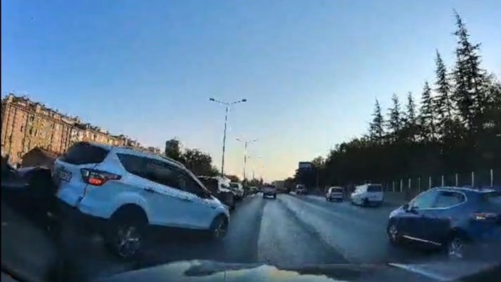 Görüntülerde, çarpmanın etkisiyle SUV’un arka kısmının havaya kalktığı ve çevredeki araçların kazadan son anda kurtulduğu anlar net şekilde görüldü.