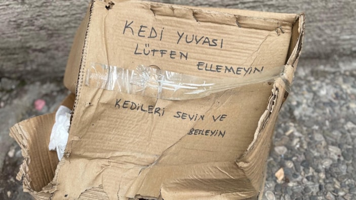 Yazılan nota rağmen kimliği belirsiz kişi veya kişiler tarafından, kedi yuvası kullanılamaz hale getirildi.