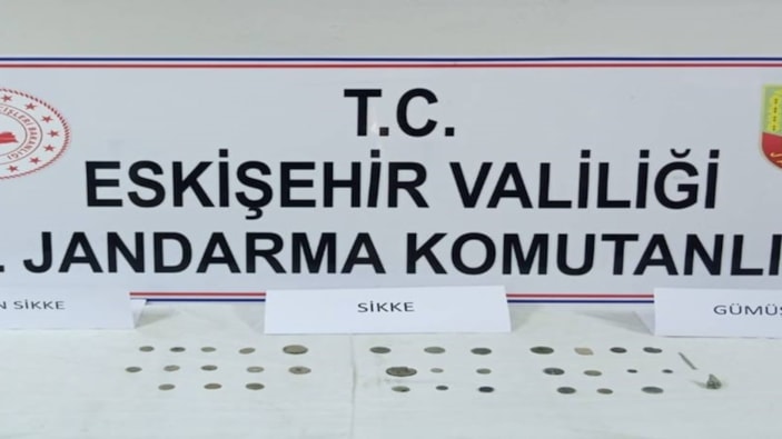 Eskişehir İl Jandarma Komutanlığına bağlı birimlerin çalışması neticesinde şüpheli şahıslara ait olduğu tespit edilen araçta yapılan aramada; Roma dönemine ait olduğu değerlendirilen 1 adet altın sikke, 1 adet gümüş sikke, 33 adet bronz sikke ve 2 adet obje ele geçirildi.
