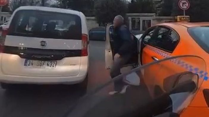 Taksi şoförü ise, "Sen de sopa al. Ne oldu. Germe beni, zaten buramdayım. Sabah 06.00'dan beri arabadayım. Sizlerle uğraşıyorum." şeklinde karşılık verdi.