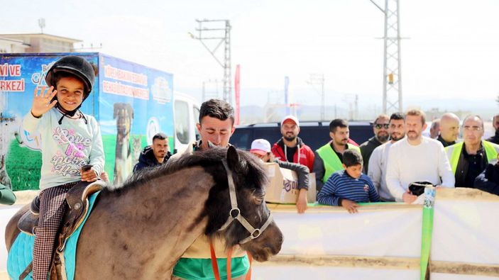 Gaziantep Büyükşehir Belediyesi Doğal Hayatı Koruma ve Hayvanat Bahçesi Daire Başkanlığı, Kahramanmaraş merkezli depremlerden etkilenen Nurdağı’nda çocukların rehabilitasyonu için at ile terapi hizmeti vermeye başladı.