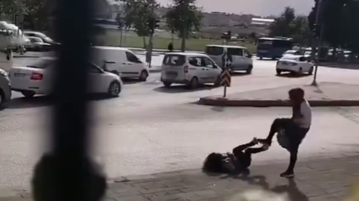 Diğer yandan görüntülerde, kavga esnasında çevredekilerin olayı sadece izlemekle yetindiği ve bazı otomobil sürücülerinin yaşananlara tepki göstermek amacıyla kornaya bastığı görüldü.