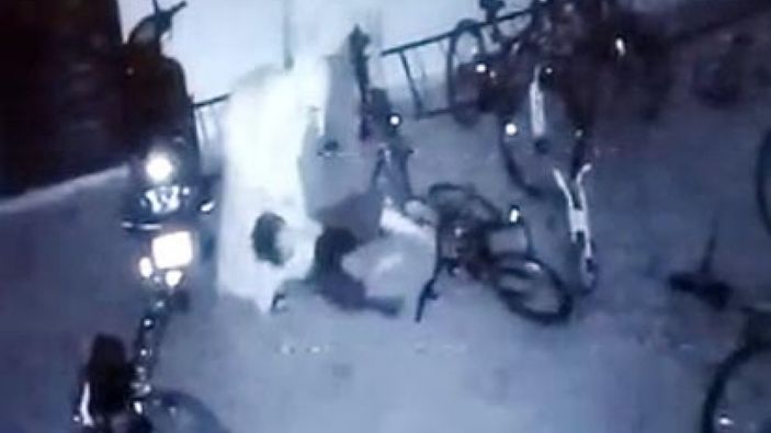 Garaja gelen kadın ile kocası, Kaya'yı yere yatırıp dakikalarca tekme tokat dövdü.