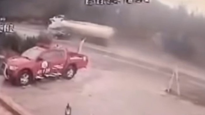 Feci kaza, çevredeki bir iş yerinin güvenlik kameralarına saniye saniye yansıdı. Görüntülerde, seyir halinde olan otomobil ile yakıt yüklü tankerin çarpışma anı ve kaza sonrası otomobilin metrelerce savrulması yer aldı.
