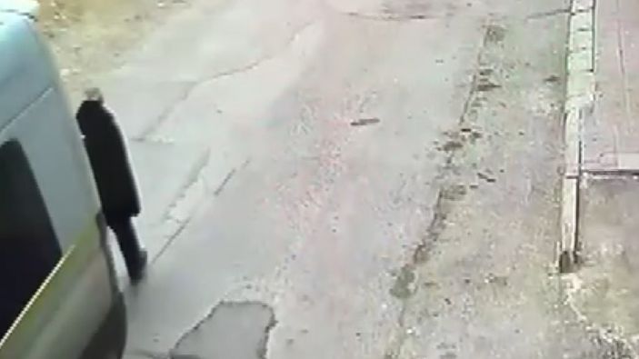 Görüntülerde, yaşlı adamın sokakta yavaş adımlarla yürürken geri manevra yapan servisin altında kalarak öldüğü anlar yer aldı.