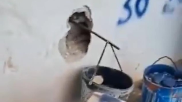 Kurban satış yerinde kurulan kantarın tartı bölgesinin arkasındaki duvara ustalıkla delik açıldı.