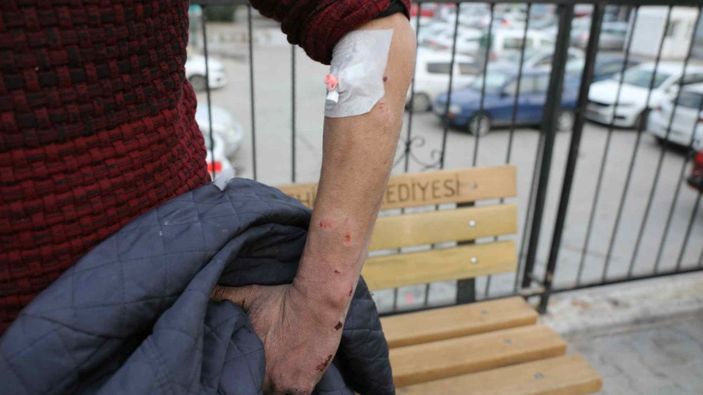 Kol, bacak ve sırt bölgelerinden ısırılan Göçmen, tedavisinin ardından taburcu edilirken, şikayeti üzerine polis çalışma başlattı.