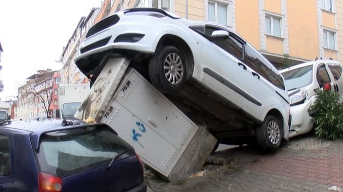 Otomobillerden biri ise sokak başında bulunan trafonun üstüne çıktı. Kazada yaralanan olmazken otomobillerde hasar oluştu.