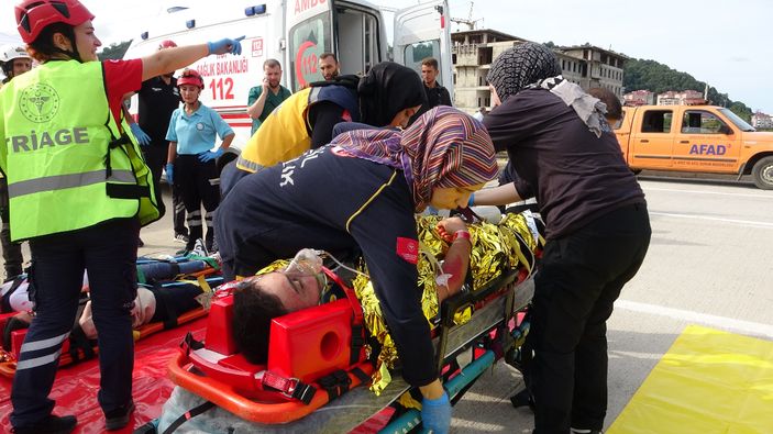 Giresun'da gerçeğini aratmayan trafik kazası tatbikatı