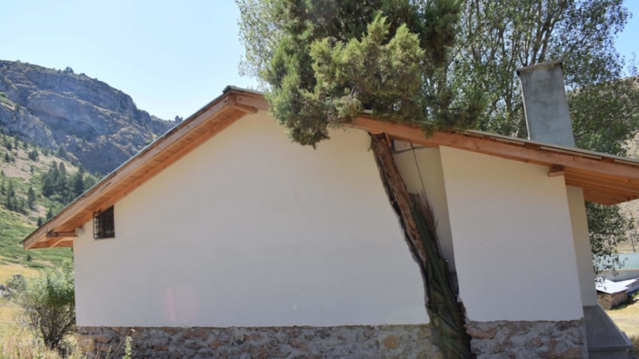 Taş duvarı oyup, çatıyı delen Kabal, "Gurbet hayatımı bitirip, emekli olarak köyüme döndüm. Babamızdan kalan evi tekrar imar ettim. İmarı yaparken de özellikle de bu ağaca herhangi bir zarar vermedim, ağacı korudum. Babamızdan gelen doğa sevgimizi, hep devam ettirdik.