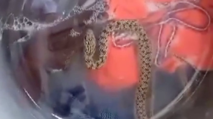 Hakkari'de çamaşır makinesinde yılan çıktı