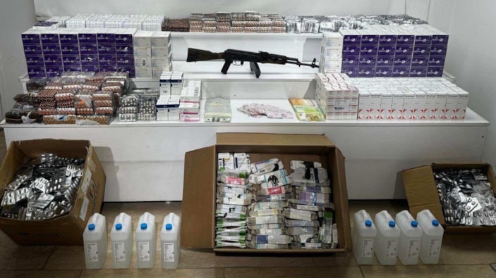 Şüphelilerin evlerinde yapılan aramalarda 8 bin 880 euro, 16 bin 990 dolar, 22 bin 400 Türk lirası, 1 adet AK-47 Kaleşnikof piyade tüfeği, 59 bin 199 adet piyasa değeri 500 bin lira tıbbi ilaç ele geçirildi.