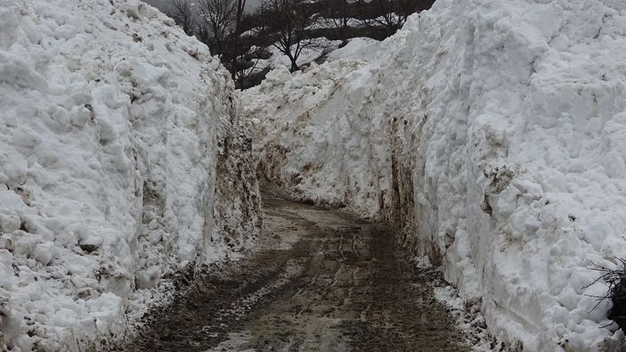 Ekipler, köye inen dev kar kütlelerini uzun süren uğraşların ardından temizledi.