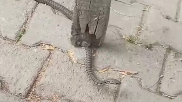 Daha çok çocukların karşısına çıkan ve mahallede paniğe yol açan yılan nedeniyle sokak sakinleri nöbet tutmaya başladı.