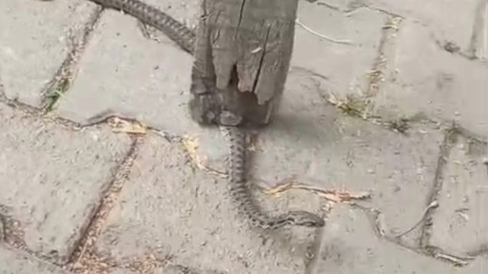 Hakkari'de mahalleliye korku yaşatan yılan 3 günlük nöbet sonrası yakalandı