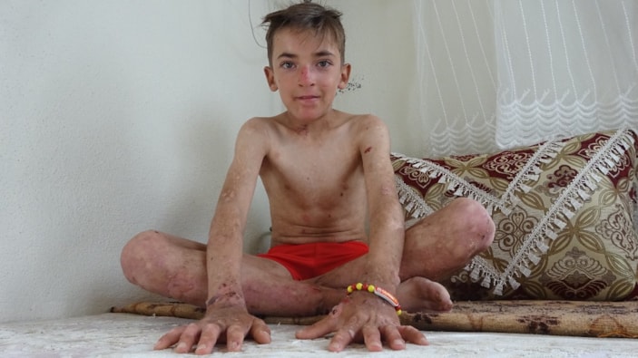 Su torbalarının patlaması sonucu oluşan yaralardan dolayı sürekli kaşınan ve görünümü nedeniyle arkadaşlarının dalga geçtiği Amar Yaşar, tedavi olmak istiyor.