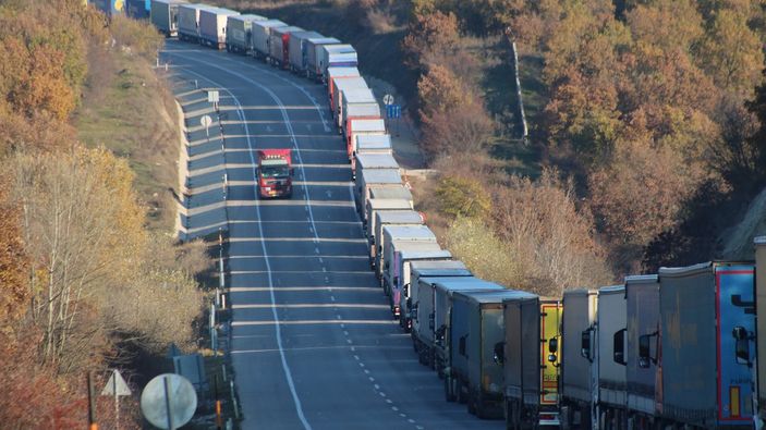 Bulgaristan’ın yoğunluğa cevap verememesi nedeniyle Hamzabeyli Sınır Kapısı’nda yaklaşık 16 kilometrelik tır kuyruğu, sürücüleri isyan ettirdi.