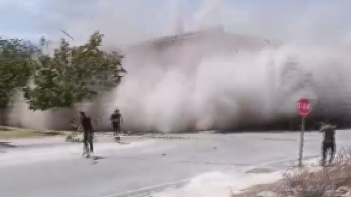 Yıkımda herhangi bir sorun yaşanmazken bu anları vatandaşlar meraklı gözlerle izledi ve cep telefonlarıyla kayıt altına aldı.