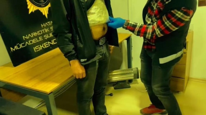 Otobüsteki A.K. ve N.C. isimli yolcuların yapılan üst aramasında karın bölgelerine gizlenmiş sarılı şekilde 977 gram uyuşturucu madde ele geçirildi.