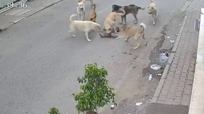 Kan donduran görüntülerde; sokak köpeklerinin kedinin etrafını sardığı ve ağızlarında parçaladıkları anlar kameraya yansıdı. Mahallede yaşayan vatandaşlarsa köpeklere tepki gösterdiler.