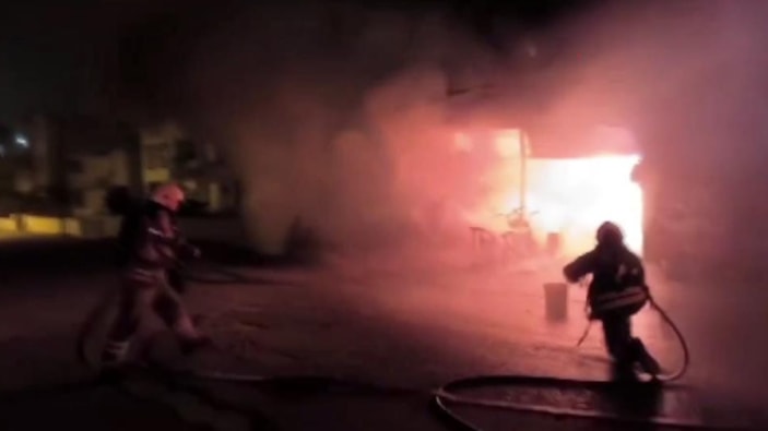 Hatay'ın Dörtyol ilçesi Yeşil Mahallesi'nde bulunan motosiklet tamircisinde yangın çıktı.