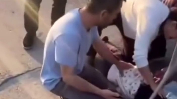 Hatay'da yolun karşısına geçmeye çalışan anne ile 2 çocuğuna yaya geçidinde otomobil çarparken, ilk müdahale ise olay yerinde yapıldı.