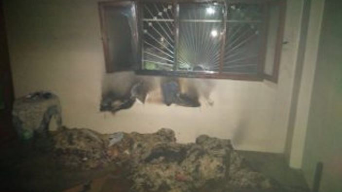 Mesken yangını ihbarı alan itfaiye ekiplerine, bıçaklı saldırı girişiminde bulunuldu.