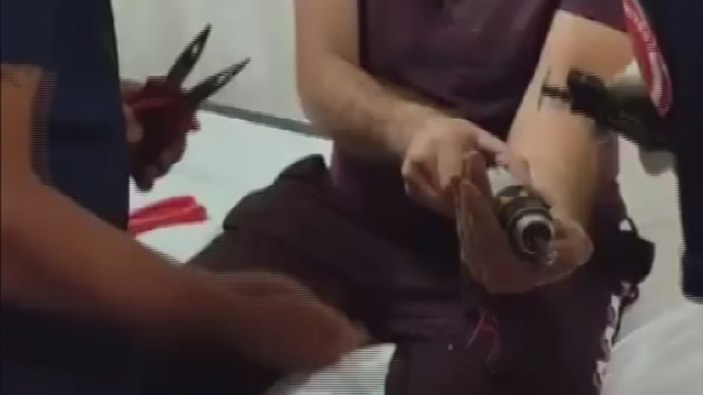 Hatay'da bir vatandaş elinin bir parmağını matkaba sıkıştırdı ve kendi imkanları ile kurtaramayınca soluğu hastanede aldı. Hastane de de sorun çözülemeyince vatandaşın imdadına itfaiye ekibi yetişti.
