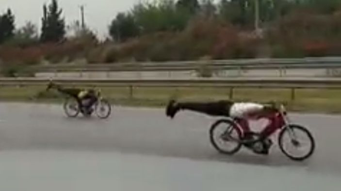 Hatay'da motosikletlerin üzerine yatarak yarıştılar ViDEO