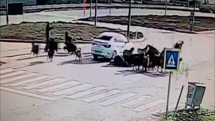 Kazaya ilişkin görüntüler çevredeki güvenlik kamerasına yansırken, hayvan sahibi Şahan ile otomobil sürücüsünün kazayı yara almadan atlattığı öğrenildi.