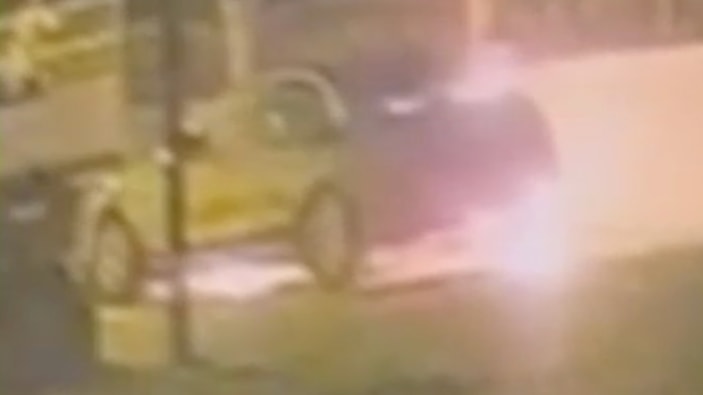 Öte yandan, otomobilin kundaklanma anı çevredeki bir iş yerinin güvenlik kamerasına yansıdı.