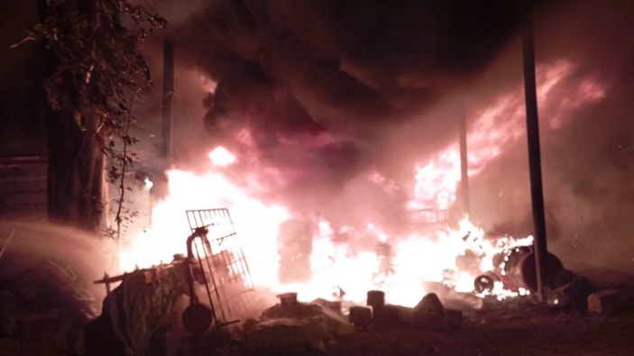 Saat 02.30 sıralarında buradan alevler yükseldi. Motosiklet yanınca traktöre sıçradı. Traktörün ön lastiği patlayınca biz sesle uyanarak yangını fark ettik. Mazot tutuşunca arka taraf da yandı. Burada 3 motosiklet, 1 sıfır traktör, çiftçi ekipmanlarımız, gübremiz ve ev eşyamız yandı. Şükürler olsun can kaybımız yok.