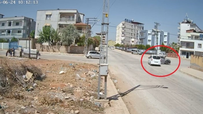 Hatay'da önündeki aracı sağdan sollamak isteyen otomobilin, hafif ticari araçla çarpışmasıyla yaşanan kaza kameraya yansıdı.