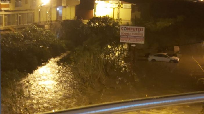 Samandağ ilçesinde etkili olan sağanak yağış nedeniyle Favvar deresi taştı, birçok araç zarar gördü.