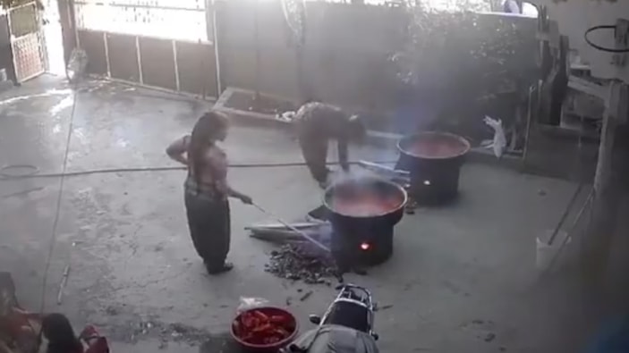 Hatay'da salça yapılan kazanın bulunduğu noktada yaşanan patlama güvenlik kamerasınca görüntülendi.