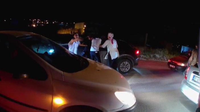 Kavga esnasında bir kadının ‘Yardım edin' diyerek kavgayı ayırmaya çalıştığı anlar dikkat çekerken, polis ekiplerinin olay yerine gelmesiyle sakinleşen kavga anbean kameralara yansıdı.